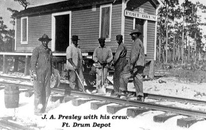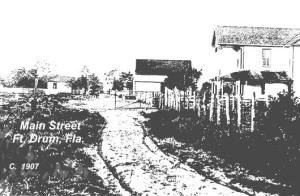 | Fort Drum was a Seminole War fort built in the 1840's. The exact location was at the junction of two of the old military roads. One was called the old wire road and the other one came from Fort Basinger. Henry Hancock owns the property today that includes the old fort site. After the Civil War the area became a prime cattle range. The first pioneer was Henry Parker who moved to the area about 1870 and opened a store and trading post. The postmaster was John Webb. The Seminole Indians would be regular customers at Parkers store trading hides and plumes for merchandise. Other pioneers of the area include: Henry Holmes, Jim Morgan, Jim Norman, George Drawdy, Tipp Padgett, John McLaughlin, Jasper Journigan, Don Sloan, Asbury Sellers, and Wade Raulerson. Submitted by: Mike Woodfin |