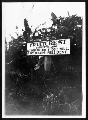 | Fruitcrest was a small agricultural community in the southern Glades area. It was founded around 1912 by Thomas Will, who led efforts to reclaim the upper Everglades and experimented with machinery to break up the land to be farmable. He sold plots of land in an area he called Fruitcrest, and hoped to bring in investors from the Palm Beach area. Early settlers and visitors to the Fruitcrest site include H. N. Graham, W. A Blount and W. E. Hearn. Information and details about Fruitcrest are scarce. The Hurricane of 1928 flooded and destroyed the community, along with much of Belle Glade and the Glades area south of Lake Okeechobee. Today nothing remains of Fruitcrest except the sugarcane fields it was intended to cultivate and farm. Submitted by: Jim Pike |