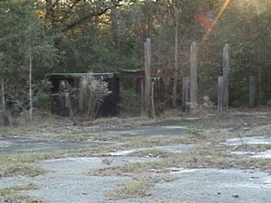 South of Tallahassee on 373 and just north of the intersection with Helen Guard Station Rd. The foundations are on the dirt roads off the east side of 373 REMAINS: Foundations |