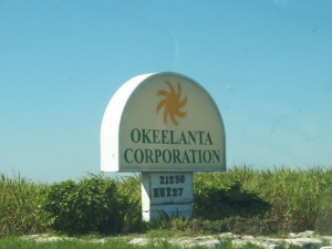 No current residents or town remains. In Palm Beach County, take US27 to the intersection of 827 Hillsboro Canal Rd. This is Okeelanta. The only indication you have reached the town is the large sugar processing plant nearby. REMAINS: Sugarcane fields, no buildings or structures |
