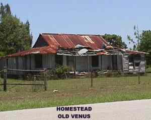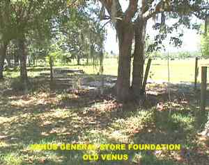 Take SR 27 South and turn West on CR 731 to find the communities of Old Venus (west of RR Track)and Venus just beyond. REMAINS: Various Cracker homesteads, General Store foundation, Concrete city curbs, Albritton General Store, burned site of school. Mostly old rubble, looks to have been recently bulldozed. |