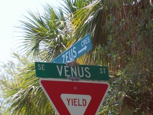The Olympia area is now part of Hobe Sound. The original site includes the section south of Bridge Road, east of Federal Highway. Take Bridge Road to Hercules Street and turn south. The old Picture City School is on nearby Apollo Street. The town area still has the original street names of Greek Gods and heroic mythical figures, and several original 8 foot cement light posts still line the west side of Dixie Highway. REMAINS: Olympia Picture City School, portions of original sidewalk, street signs names based on Greek mythology |