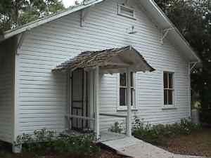 | Pine Level was one of the largest and only towns in Desoto County. Founded in the 1850's. There was a courthouse, jail, two churches, saloons, stores, warehouses, many homes. There were so many gunfights on the streets of Pine Level that it rivaled any Wild, West Town. The wild gambling, drinking and gunplay atmosphere of the town was such that criminal gangs were drawn there. The infamous "Sarasota Gang" made Pine Level their headquarters. Most of the gang was captured and brought to trial in 1855. According to research done by Historian, James Warnke, the old jail "leaked prisoners like a sieve". By the time of the trial only 9 were left. The trial drew National attention at the time. They were all acquitted and the money never found. In 1866 the town was made the county seat of then Manatee County. Pine Level only held the County seat for about 18 months and it was moved to nearby Arcadia on the Pease (Peace) River. Pine Level could not compete with Arcadia and the access to the river. The town slowly declined to a cattle and farming community until it disappeared completely. Research taken from an article by Gary Uebelhoer: The specifications for the Court House of 1866 was "a log house, 20 feet square in the cleaved 10-foot story with a room added to the end, 20 feet by 10 feet, with a partition through the room making two 10 foot Jury Rooms to be cased with 2-foot hart pine or cypress board and floored with planked or hyghed puncheon boards. One door in each side and two windows to be cased and faced with shutters. The house to be furnished with one table, 2 feet by 8 feet long, 22 10-foot benches, 1 box bench for the Judge." There was a few inches of sawdust on the floor and all had to endure flea infestation. It was said to be "the worst courthouse in Florida." The only standing structure on the town site today is the Pine Level Methodist Church, a single story white frame building. This structure is the bottom floor of the original school house that was used to replace the original Mehtodist Church (destroyed in the Hurricane of 1923) previously located immediately south across Pine Level Road. The top floor of this "new" church was destroyed by a hurricane in 1930 leaving only the first floor, which was re-roofed and is the present church. Mike Woodfin Submitted by: Mike Woodfin |