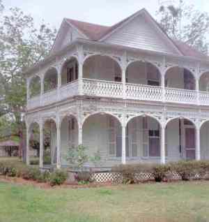 On highway 24, going from Gainesville to Cedar Key, Rosewood still appears on AAA maps, although the town was burned early in the century in the incident that gave rise to the book and movie. REMAINS: None, other than the merchant's house. |