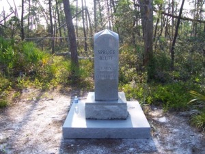 The townsite of Spruce Bluff is now a small park in Port Saint Lucie. From I-95 or the Turnpike, take SR 716 east to Bayshore Blvd, south to Oakridge Blvd, east to Southbend Blvd, south to Peru Street. Take Peru Street to Dar Lane, that leads to Spruce Bluff Park. A walking trail inside the park leads visitors around the former town area. REMAINS: Spruce Bluff cemetery |