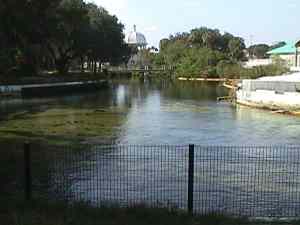 The area about the sulphur spring here has been a favorite picnicking place since the turn of the century. There was a separate community by the same name here beginning in 1924 with the establishment of a post office. The place is very busy since tampa has grown out to absorb the area. The spring is polluted now because of storm run off into neigboring sink holes. The old shopping district is across nebraska. Check out the renovated spring movie theatre and the old club on the water front. Also, the site of the old iron bridge that used to cross the hillsborough river is marked with a plaque next to the club. Remains of the shore part of the bridge are still there. There used to be a large two story hotel next to the spring but it was torn down for additional parking for a dog track. The gazebo was built at the same time as the tower when the owner of the hotel realized the tourist potential of the spring. Many came to bathe in the spring to help their ailments in the late 1800's and early 1900's. One can see many post cards of the attraction in the florida state picture archives. Drive around in the neigborhood east of nebraska and look for houses that are at least 100 years old. Submitted by: Mike and Aaron Woodfin THE SULPHUR SPRINGS HOTEL: Developer Joshiah Richardson built the hotel and mall in the 1920s. Sulpher Springs was a booming resort at the time. Once called the Nebraska Hotel the two story Sulphur Springs Arcade featured Mediterranean Revival style architecture with a wide interior hallway dividing the rooms with rows of columns and arches lining both floors. During it's hey day shoppers enjoyed two drug stores, a furniture store, a jeweler, a restaurant, a hardward store, beauty and barber shops, a dime store, a bank, a pool hall, a post office, a doctor's office, a sheriff's substation, a bakery, a grocery store and a department store. Street cars brought people north from Tampa to visit the spring-fed swimming hole and scenic area. An effort to save the hotel sprouted in 1975 when the demolition plans were announced. Hundreds signing the petition, but the bulldozers arrived in 1976 and razed the building for a dog track parking lot. Mike Woodfin