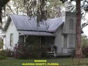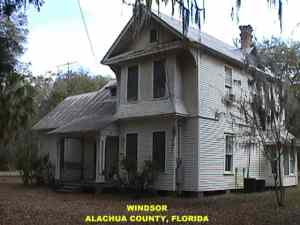Take US 301 South in Alachua County then turn West on CR 234. When the road dead ends turn to the south and you are in Windsor. Nice turn of the century renovated homes. REMAINS: Renovated 1800 homes, early church, General Store |