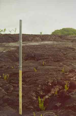 Very few die-hard residents with trailers on top of the lava cover. One has trucked in dirt to fill cracks in the lava and planted cocoanut trees on his lava property. Take Hwy 11 South of Hilo to Hwy 130 to Kalapana. There is also access on Hwy 137. You might need a 4 wheel drive as some rough roads have been chiseled over the lava for residents. If you have a regular two wheel drive rental, it might be better to explore on foot. You can get somewhat near the area where, as of this writing, lava is still pouring into the sea through an underground lava tube. REMAINS: Little to none |