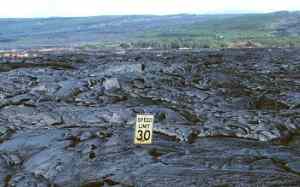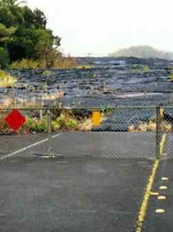 | Kalapana was one of the most beautiful old Hawaiian villages on Hawaii and was becoming a modern suburban town. They had the famous "black sand beach" and the historical "Queens Bath", a spring fed pool in the rock. In 1983 lava began to erupt from Kilauea Volcano threatening part of Kalapana by 1986. By 1990 most of the town was buried under sometimes 30 feet of lava. There is a video documentary about the event available. The lava destroyed 181 homes, a visitor center and maintenance shop in Hawaii Volcanoes National Park, highways, and treasured historical and archeological sites. the famous painted church was moved out of harms way to a new location but the community center was destroyed. Submitted by: Mike Woodfin |