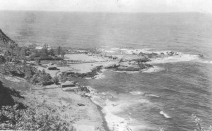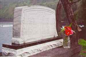 The post office in the early years was located at the Abel Harris plantation. It was later located at William Lyngate's office at the plantation. Early postmasters: A. Harris (1859-60), W Lydgate (1879 - 1884). In 1887 volume was 6,000 letters and increased to 9,000 in 1892. Laupahoehoe, the site of the Laupahoehoe Sugar Company (owned by Theo H Davies and William Lydgate) and a busy harbor had two to three thousand inhabitants at one time. The harbor, however, did not allow large ships to be loaded directly. Smaller boats were used to ferry shipments from land to big ships anchored off shore. The establishment of the railroad system for transporting goods to the Hilo Harbor for direct loading of shipments reduced the use of the Laupahoehoe Harbor. Laupahoehoe (Leaf of Lava) had a thriving little community from the 1800's. There was a Hotel where a 1.00 a day could rent you a room but the hotel had no restaurant. You had to go across the street to the little chinese restaurant where 1.50 could by you a meal. The community was made up of fishermen and taro farmers where the area up to the cliff was terraced with taro fields. There was a church and many homes. The area was a normal nautical landing since there is no other point because of cliffs until Hilo. Laupahoehoe is infamous for April 1st, 1946 when three towering tidal waves roared over the peninsula at 7:00 AM killing many residents including 23 students and four teachers. The children happily gathered fish deposited from the huge, but not deadly, second wave on the school grounds while the teachers were in their cabin changing back into dry clothes when the final huge (some say 50 feet high) and deadly wave hit. No one had noticed all the water being sucked out of the bay until it was too late. Only two children and one teacher survived. They remained in the water 10 hours while people on the cliff could get a boat for rescue since all watercraft had been destroyed by the tidal wave. Other than one mangled body (crushed by the rocks) others were never found. A monument with the names and ages of the children and teachers has been erected on the school site. Most nearby residents including the school were moved to the top of the ridge. Incidently, that one surviving teacher married the doctor that was in the rescue boat within a year. Submitted by: Mike Woodfin |