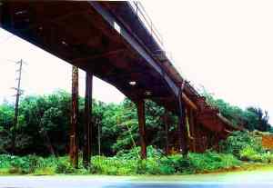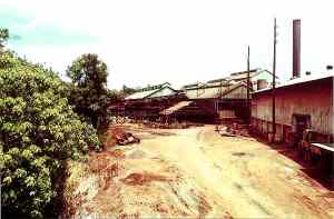 Just outside the fading town of Lihue, off Kaumuali'i Hwy, there is a large sugar processing mill and a conveyor belt across the two-lane highway. It is officially shutdown on Novemeber 17, 2000, by Amfac/JMB sending it into just another GhostSite of Sugar Mills on the island of Kauai. The last harvest of the sugar cane marks the very end days of the sugar agriculture in the Hawaiian Islands. Right where Rice St. bends out of Lihu'e town south into Kaumuali'i Hwy, you'll find this place. Lihu'e is one third of the way up the east coast of the island of Kauai. REMAINS: Large Sugar Plantation buidlings and smoke stacks |