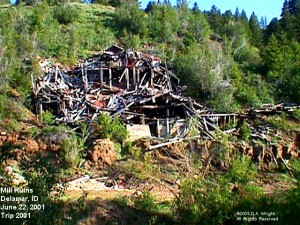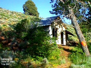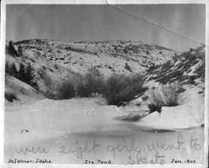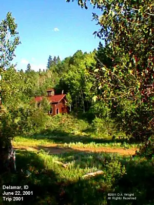 Just east of the Oregon Idaho border where highway 95 crosses from Oregon into Idaho from the Jordan Valley is the road to DeLamar. A sailing ship captain, Joseph R. DeLamar, who decided to leave the sea for mining country, founded the town. He did so in 1888 by acquiring various mining claims in the Jordan Canyon and naming the town after himself. He built a mill, hotel, stores, a school and other facilities including a red light district. During its lifetime, it is estimated the town produced about $8 million in silver. When in the area, don't miss the chance to visit DeLamar. Submitted by Henry Chenowith. Four Little Girls: Louie and Lottie and Ho and Hazel were playmates. Louie and Lottie's parents were Mr. and Mrs. Davey. Mr. Davey was Superintendent of the Gold Mine and their house was near the mine and the four little girls could play around the mine in the workshop. Where the machinery and buzz saws were. We played around the big logs and climbed on top of the high lumber piles. It's a wonder we didn't get hurt! Sometimes we peeked into the blacksmith shop where the Smithy blew his charcoal fire with a bellows. He made shoes for the mules. The mules pulled long iron trains of ore out of the tunnels. Lots of times we four girls would go way into the tunnel until we could hear the mule train coming. Then we would run out quick or we would have been run over. We used to climb into the big bins where they dumped the ore. It was about as big as a service station. They would release the ore and it would go down into the tram way below which took it to the town. The ore they didn't want was dumped out in hills right near our front yard. They were very pretty yellow and blue and gold color. We had lots of fun playing in the ore. Once Mr. Davey brought home a beautiful little fawn. It was so cute until it started to grow horns. Then it ran after us and butted us with his horns. One time when I was very little about four years old the Mine caught fire and I hung on my Mommie's skirt and cried it was awful to see all the shops burn up. We all had horses. One day Louie and Lottie and Ho and Hazel all climbed on Pompadour, my Mommies old horse and we went over to Cyclamen Swamp for a ride. It was so pretty, beautiful little cyclamens growing all over. Well we were riding along and all of a sudden Pompadour jumped sideways and stopped suddenly. We all flew off and over his head into the mud. What had scared Pomp was the Chinese laundry man. He was carrying a big white bundle of laundry on his back. Lots of times we would go for a ride to Soda Pop Springs. We had been riding there running our horses and jumping them over sagebrush and then drinking all the soda pop we wanted. It was the only kind of water there even the horses and cows drank it . One day Ho and Hazel's brother , Happy was out hunting and brought home two little baby owls. They were so cute about three inches high. Brown and gray and such bright eyes. They can turn their heads all the way around. They sat on top of Mommies piano. But sad to say one day they fell into the water bucket and were drowned. You know they can't see in the daytime and another day Happy brought home a large Horned Owl and he had to catch live mice to feed it. The owl would just open his mouth and in one gulp swallow the whole mouse. One day when Happy was out hunting horses his horse stepped in a gopher hole and Happy was thrown off and his leg broken. When Mom heard the news she was so scared she said, "Tell him to come home and bring his broken leg with him!" My brother Bruce had a dancing horse and one day he was riding him in the yard and his horse danced right up on top of a cord of wood. It sure looked queer! My sister Ho, her name was Idaho, but we called her Ho for short. She had a black horse that was mean when it didn't want to go. It would rear up on it's hind legs and then throw himself over backwards and try and crush you. But Ho was a very good rider and always managed to slide out of the saddle in time. I had a nice little, brown mare that didn't like men or boys. If they tried to ride her she would turn her head around and bite them. Then I had a baldface horse. That's one with a wide white stripe in his face. His favorite trick was to step on your foot and he wouldn't get off and gee whiz did it hurt! Happy had a horse ranch in Idaho and sometimes at the Holidays we would enter some of our horses in the races and was it exciting! We used to fight with the other kids about which horse would win. And Some times Ho would ride her horse, Jim, in the races and she rode with out a saddle. Mom had a great big, gray and white cat called Jock. He would sit on top of the piano and if a dog came in he just jumped on the dog and rode him out the door. The dogs were so scared they howled with fright. There were lots of animals around our yard. Sometimes there would be about thirty horses running around. Besides two dogs, a flock of chickens, two cows and some turkeys besides pigs there were seven of us kids....four boys and three girls. Poor Mom was nearly always cooking or washing clothes. -- Hazel Sothern Carlson Memories by Hazel Sothern Carlson: We loved to ski. My oldest brother Happy made the skis. He would put two long, narrow, pointed pieces of lumber in the wash boiler and steam them. Then curve the points and then put a weight on them until they hardened. Then he would wax them. The first time I tried to ride my skis I went on top of one of the hills in front of our house. I put the skis on and started down okay. Then I went faster and faster and didn�t know how to stop and went right into a cabin door and knocked over a man that was sitting there smoking. He was so mad he swore at me. The snow came clear up to the roof and we had to shovel out the doors and windows. Sometimes my sis and I sneaked out the window and went skiing when we were supposed to be asleep. We lived in a gold-mining town and everyone knew everyone else. If there was