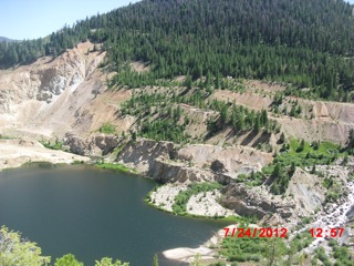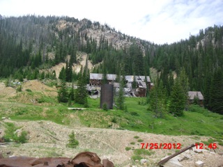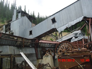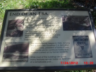 Discovered during the Thunder Mountain rush of the early 1900s, Stibnite became famous for its mercury, antimony, gold and tungsten ores. The Meadow Creek mine was one of the earliest followed by a number of others. All were started by tunneling. World War II saw the beginning of the open pit mine that became the leading producer of vital tungsten. The conclusion of the war saw the closing of the mine and the huge mill has since been dismantled. Enough remains, however, to make a visit worthwhile.