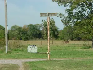 | Litchfield was originally named Edwin (1878). The name of the town was changed to Litchfield in 1881. It was a coal town in every sense, and about 500 car loads of coal were shipped each month at it's peak production. There was a post office, public school, a general store, a drug store, two blacksmith shops, a wagon shop and about 200 inhabitants. Today there is no sign a town existed. Litchfield is located four miles northeast of Pittsburg, Kansas. Submitted by: Bill DeGarmo | ![]() The only thing left of Litchfield is this old rail station sign on 570th road 1/2 mile east of Free King's Highway Courtesy Tom Sevart |
