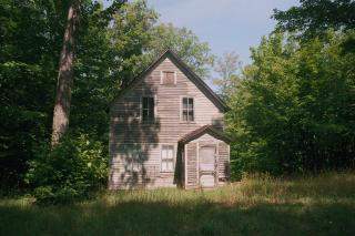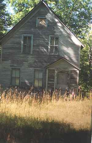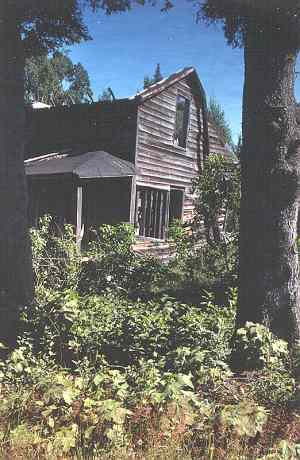 clearly marked with a sign. REMAINS: There are several concrete foundations (of the school, the store, and other buildings) in the thick undergrowth and among the trees; there are also a few frame houses--some of which have fallen in, some of which have been "re-habbed" and are used during the summer months. |