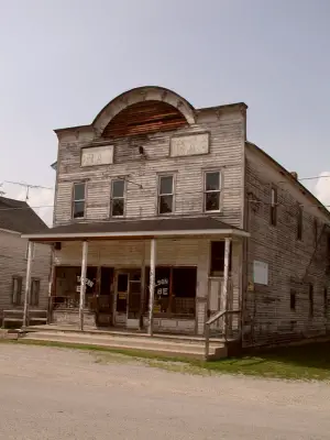 | Wilson was established as a stop on the C&NW RR in 1881, and soon grew to a sizeable town; by WWI, it had about 500 people with a hotel and numerous business establishments, most of them associated with agriculture. Decline appears to have set in the 1950s, and most of the population left and abandoned the businesses and houses. Submitted by: Kurt Wenner |