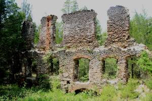 This area of New Jersey was a major industrial area about 175 years ago: there were iron furnaces, glass works, paper mills, etc. Harrisville was a major paper mill town (due to the abundant water), and was a thriving community as late as the 1880s. Ownership disputes and changes in the processes of making paper produced financial problems; the factory closed, and was sold in the 1890s; by then most of the residents had moved away. A major fire swept the town in 1910, and in subsequent years, vandals and thieves took most of the remains. Submitted by: Kurt Wenner Harrisville, a once thriving paper mill town which made paper out of salt hay was a thriving community totally dependent on the operation of the mill. The town had white picket fences and even boasted of gas lighted laterns.As the railroad progressed, and the paper making techniques became more effecient, Harrisville soon went into disrepair and its inhabitants vanished. Submitted by: john c. spoulos Harrisville is said to be the glamour exhibit for ruins of the Wharton tract. Nowhere have the Pine Barrens demonstrated more clearly their capacity to obliterate man's handiwork than at this ghost town. In less than a century Harrisville has been reduced from a prosperous, stoutly built industrial community to a cluster of vanishing ruins and scattered piles of rubble. Dominating the entire scene are towering skeletons of old stone buildings. The heart of this community was its paper factory, a vast structure with walls up to three feet in thickness. The main building was three hundred feet long and two and a half stories high. Harrisville is about eight miles northwest of New Gretna at a point where the modern highway to Chatsworth crosses the east brand of the Wading River. Submitted by Henry Chenoweth. |