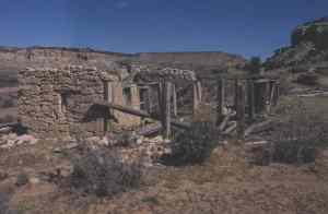 | The town had its first start sometime prior to the 1870s by Spanish-speaking people who farmed the fertile land along the Rio Puerco. This was Navaho country and the Indians were reluctant to share it with their Spanish neighbors. Constant raids by the Navahos over a period of years forced abandonment of the town during the 1870s. La Ventana was resettled in 1914 and grew into a coal mining town during the mid 1920s to the early 1930s. The depression years brought an end to the town. Today La Ventana is a jumble of deserted buildings. Courtesy Henry Chenoweth. |