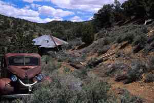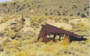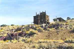 | Manhattan is one of those high altitude mining towns at 7,000 feet at the slope of Bald Mountain. Like a few other early mining camps, Manhattan had two beginnings. The first started in '60s and lasted until about 1890. A few people stayed on but mining activity had all but disappeared. Its second beginning started in 1900 with the discovery of "Jewelry Ore" which lasted until about 1905 when the town again went to sleep. Its population at that time was about 500 people. There still may be a few who call Manhattan home, but most have long since departed. The town is located north of Tonopah on highway 376. Submitted by: Shawn Hall from his book Preserving The Glory Days: Ghost Towns And Mining Camps Of Nye County, Nevada Click here to purchase his book! The Manhattan district was active long before the town of Manhattan was formed. The initial discovery of silver ore was in 1866 and by 1869 things was slowing down. Before the year was over the district was totally abandoned. Manhattan district remained silent until major new discoveries were made in 1905. The town sprang up almost over night when four cowpunchers traveling from Belmont through Manhattan Gulch discovered ore that assayed as much as $3,000 a ton. Initially, a tent city of 500 formed at the mouth of Manhattan Gulch. Prospectors discovered a new ledge that assayed as high as $10,000 a ton, focusing even more interest on Manhattan. Soon, the gulch was filled with saloons, hotels, assay offices, and few schools. A post office was opened in December of 1905. By that time, the town had three banks, a Wells Fargo office, seventy-five frame buildings, and a population of 1,000. It also had three newspapers. And then came the San Francisco earthquake of April 1906 that shook Manhattan as much as it did San Francisco. San Francisco financiers who withdrew their support to rebuild San Francisco backed much of the mining activity in Manhattan. Manhattan’s banks closed and the population dropped to a few hundred. Despite this setback, many businesses remained open and continued to operate. New discoveries in September 1906 and June of 1907 barely kept the town alive. The town’s perseverance paid off when, in 1909, rich placer deposits were discovered on the edge of Big Smoky Valley, a few miles below Manhattan. During Manhattan’s lengthy production period many different mining companies were active in the district and the total value of ore mined in the district is well over $12 million. The remains at Manhattan are extensive and very interesting. A visit to the Manhattan Cemetery located half a mile west of town is a must.