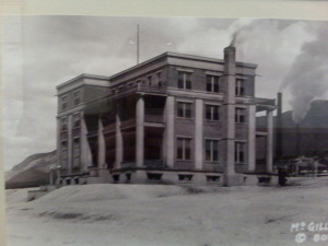 | In 1910 the town was far removed in character and a far cry from the boisterous, rip-roaring, gun-toting camp of Goldfield. McGill was a company town of the Nevada Consolidated Copper Company located on U.S. Highway 93 north of Ely. It was young and progressive, with one dusty main business street with raised wooden sidewalks. The town was sectioned off. The elite lived in what was referred to as the �Charmed Circle.� This was the only section with houses with bathrooms. Other sections were the Upper Town, Middle town, Greek Town, Austrian Town, and Jap Town. Single people lived in tarpaper cabins in Lower Town. The general manager of the company lived in a two-story home in Charmed Circle that became one of the most attractive homes in Nevada. Tall black wrought-iron gates mark the entranceway leading up broad steps to a porch supported by red brick pillars. The home even provided rooms for servants. But now the house stands silent, neglected, unoccupied, and represents fond memories of the elegant life in the �Charmed Circle� of a western mining camp. McGill was another town that grew from a ranching community and from that became the smelting center for White Pine County. The ranch was first established in 1872 and soon had extensive grain fields. Neil McGill and his partner, William Lyons, purchased the ranch in 1886 and soon the ranch was one of the most prosperous in the county. A post office opened in 1891. Five years later, William McGill formed a partnership with Jewett Adams, a former Nevada governor. The partnership created one of the largest sheep and cattle empires in Nevada. The Adams-McGill Corporation continued for many years, but tragedy struck on June 18, 1920 when Adams died in San Francisco. McGill continued to run the corporation until his death in April 1923. The empire deteriorated rapidly without McGill’s guidance, and in 1930 the corporation was liquidated. While the McGill-Adams partnership was important to the town’s development, the real force was the McGill smelter. Built in 1908, the $10 million smelter was a joint venture of Cumberland and Ely and the Nevada Consolidated Copper Company. By 1909, McGill employed 2,200 men. The Steptoe Valley smelting and Mining Company, operator of the smelter, built large and modern facilities for its employees and to serve as the official company headquarters. The company also opened several businesses, and McGill became a company town. McGill’s population peaked at around 3,000 during the late 1920s and early 1930s. The population declined after the Depression, and by the time the smelter closed in the late 1970s only about 1,000 residents were left. Today, the plant has been dismantled. The tall smokestack was taken down in 1993. The town now retains about 250 residents. Interesting buildings exist and a visit is well worth the time. Melvin The Nevada Northern Railroad was the reason for Melvin. John Melvin operated a small ranch at Monte Vista Hot Springs in early 1907. The railroad created a siding for delivery of supplies to the mining camp at Ruby Hill. The siding was alongside Melvin’s ranch. There was never a town since Melvin didn’t expand beyond the small ranch stage. Today, Melvin is one of many active ranches in Steptoe Valley. Menken Menken, or Sunnyside, was one of many small satellite camps that sprang up during the Hamilton boom. It was January 1869 when the Mazippa Mine was discovered and a rush developed, bringing 300 people to the area. A third of them stayed and a townsite was laid out in early February. In August the mine was producing ore valued a $1,000 per ton. By fall, the strike had played out and the camp was abandoned by the first snow. Only mine dumps mark the site.