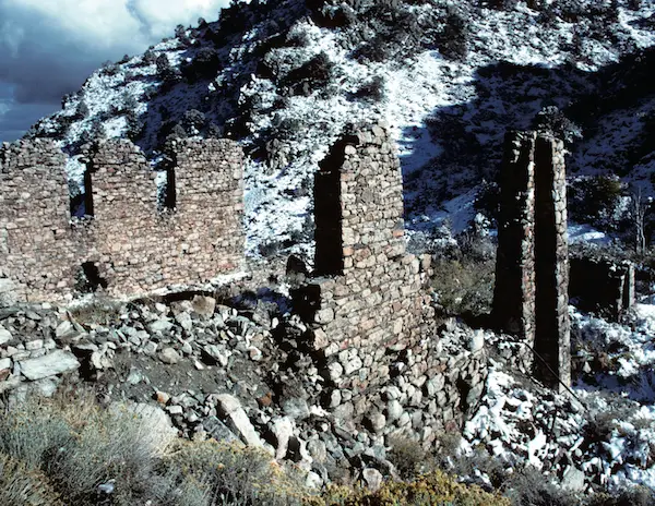 the junction with U.S. Highway 50. REMAINS: Stone foundations & walls, graveyard, old mines. |