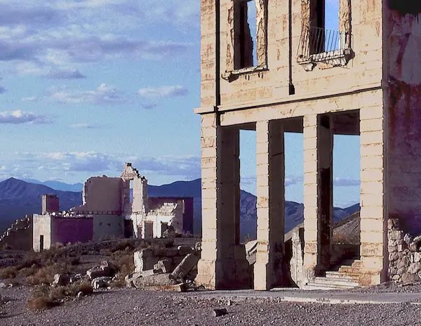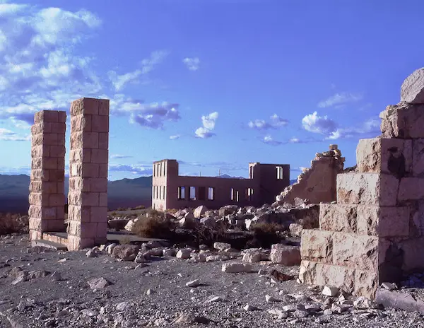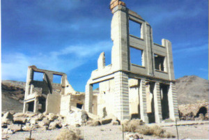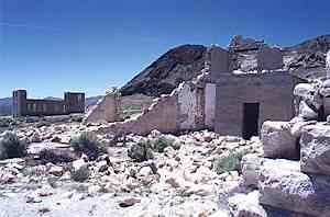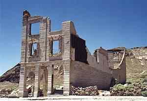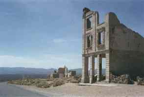 in Nevada. Great article on Rhyolite. REMAINS: Many original buildings. |