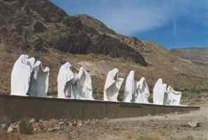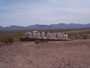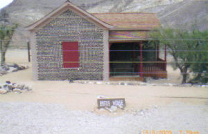 | Just out of Beatty, Nevada, Rhyolite is a ghost town with much character. With a population of over 10,000 at one time, Rhyolite was no small town. The town was founded in 1904 and by 1907 even had electricity. There is one building still standing today in Rhyolite that was made from 10,000 beer bottles of which there was no shortage in Rhyolite. Another building, the bank building, was 3 stories tall and cost $90,000 to build. Ruins of its wall still stand today. The financial panic of 1907 took its toll on the town and businesses started to shut down. Then, the mines started to play out and by 1916 the power and light company had shut down and the people had moved on. Another example of "counting your chickens before they're hatched"