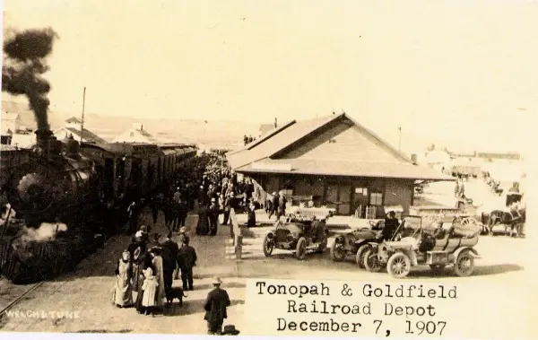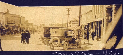 | Not many mining towns can boast gold and silver production of $250,000,000 but Tonopah can. As was the case with many mining towns, the discovery of gold at Tonopah was quite by accident. It is said a prospector by the name of James Butler was tracking down his mules that were missing. After tracking them down, he picked up a rock to throw at them but did not for he noticed the rock was flecked with something that looked like gold. Indeed, it was. Credit is given to Mrs. Butler who staked out the claim and got things going. She named the mine Mizpah that turned out to be one of the richest producers in the area. Tonopah's peak period was around 1905 when it became the county seat. Like so many before it, the good times were not to last. Production began to decline noticeably about 1913 and the glory days were a thing of the past. However, Tonopah today is far from being a ghost town. Hotels, clubs, stores and restaurants are there for the comfort of the town's visitors. Tonopah is at the point where highway 95 intersects highway 6. Submitted by: Shawn Hall from his book Preserving The Glory Days: Ghost Towns And Mining Camps Of Nye County, Nevada Click here to purchase his book! By 1906, Tonopah had gone through the initial boomtown phase and had assumed the appearance of a substantial and permanent town with stone buildings and sturdy frame houses. A two-story dancehall, the Big Casino, stood on lower Main Street. Tonopah was a �civilized� and orderly town where people were not afraid to go out at night alone. The town had its red light district as well as its uptown ladies who considered themselves pillars of society and despised their less fortunate sisters. However, whenever the hat was passed to help some destitute miner's family, the girls' contributions exceeded those of the �respectable� ladies of the town. By the 1920s, Tonopah was a fashioned-minded town but it never outgrew its beginning. One of the richest booms in the West occurred at Tonopah Springs on May 19, 1900. And the name Jim Butler will forever be associated with the name Tonopah and the many stories that surround the discovery. News of the discovery traveled to the Klondike and soon scores of eager prospectors were searching the area. But it was not until August 27, 1900 that Butler and his wife filed on eight claims near the springs six of which were some of the biggest producers the state has ever had. Because the Butler claims were known far and wide, the town was often referred to as “ Butler.” By the summer of 1901, the mines around the town produced nearly $750,000 worth of gold and silver. Now it was time for a post office and one opened on April 10, 1901 named Butler. It was not until March 3, 1905 that its name changed to Tonopah. Butler now had a population of 650 and was increasing every day. It also had six saloons, restaurants, assay offices, lodging houses, and a number of doctors and lawyers. By 1907, Tonopah had become a full-fledged city with modern hotels, electric and water companies, five banks, schools, and hundreds of other buildings. Tonopah’s mines continued to produce extremely well until the Depression brought a slowdown. From 1900 to 1921, they produced ore worth almost $121 million. Tonopah’s biggest year was 1913 when its mines yielded almost $10 million worth of gold, silver, copper, and lead. By the time World War II started, only four major mining companies were operating in Tonopah. At the end of the war even the companies that had been there at the beginning were gone. As of now, the value of the Tonopah district’s total production is just over $150 million. Tonopah is still vibrant. Tourism now plays a large part in the local economy and is an excellent home base for anyone visiting ghost towns in Nye County.