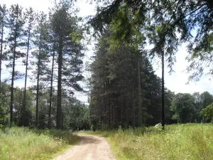 Windy City is a pure ghost in the oil fields of the Allegheny Nat'l Forest, recognizable only because of its old power lines, the tall rows of pine trees lining the main street, and the various domestic shrubs and perennials growing wild in the old lawns. This is public land, so camping is permitted, and beer cans indicate that people do camp here. Oil derricks clang and pump in abandoned front yards, making Windy City a strangely eerie place after sundown. To get there, take PA 66 thru the Allegheny Nat'l Forest; 3 mi. south of Kane, turn west onto the well-marked road through James City. About 1.9 mi after the last house in lonely James City, this little road (Forest Road 325C) enters Windy City. Official maps of the Allegheny Nat'l Forest indicate that there are still five homes in Windy City, but good luck finding them. REMAINS: Glass, wood, and metal artifacts in old yards |