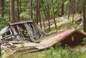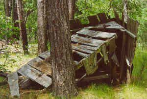 The town formed around a mine that was started in the 1890's, supplying lead, zinc, and gold. Submitted by: Gerald Traylor A visit to the old Spokane Mine and the town that grew up around it is a must for ghost town hunters. Once there, the mine buildings, schoolhouse, water tower, miners' cabins and other interesting sites make the visit an enjoyable one. Begun in 1890, the mine produced lead, zinc, gold, silver, hematite, graphite, beryl, mica, and copper. The mill is still standing and it alone is worth the visit. Drive east from Keystone to the ghost town of Harney, then south 4 miles, until nearly in sight of the Iron Mountain Road, where a road will lead you � mile to the town. Submitted by: Henry Chenoweth. My son and I visited Spokane, South Dakota twice this past week July 29, 1999. The park service has a locked gate for vehicles but a smaller gate for horses or foot traffic. On the road to Spokane (Playhouse Road) there is a small one room cabin that has been refurbished next to a brand new lodge. The locals told me that it was the original teacher's home built by the citizens of Spokane for the teacher who taught the children of Spokane. At the actual Spokane site several buildings are gone. The mine and any administrative buildings associated with the mine have been removed. One very curious feature at the top of a cleared hill near the mine was a large rectangle encircled by metal posts that obviously were part of a former or preposed fence. Within the fence area was the foundation areas of two former buildings. These had not fallen down but obviously were removed. Buildings we found. School House - pretty damaged but one of the nicest features left. The Caretakers House - Two story farm house. Totally covered by trees but in good condition. Barn - Barn for the caretakers house. Unidentified Home - Fallen in on itself. (has a possible smoke house.) Unidentified Home - Fallen in with obvious fallen in outhouse. Large Rock Foundation - Not easy to see from old road. Large two story home on hill.- Good condition with root cellar. Miners Home - Fallen in. Several small foundations around what once was the mine. Submitted by Mike and Aaron Woodfin |