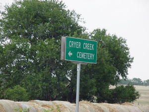 It is located at the intersection of f.m. 1126 and 2930, four miles north of Barry, Tx. Cryer Creek took its name from anearby creek. Settlers thought a fall in the stream sounded like a woman crying. REMAINS: There is not to much to see except for a cemetery, and an old building that was once a grocery store. |