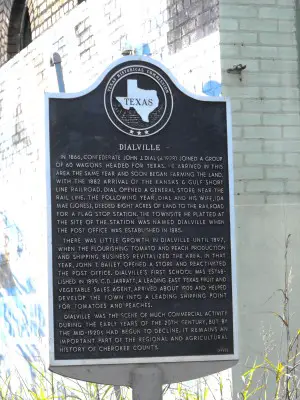 NAME: Dialville COUNTY: Cherokee ROADS: 2WD GRID: 3 CLIMATE: Hot summer, cold winter BEST TIME TO VISIT: anytime |