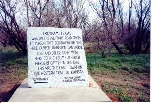 1915. See The Texas Handbook for more details. Submitted by: Joe Bailey Cole The white stones that outline the history of Trickham that are shown in your pictures are still there, however they are now very much warn and you must take a closer look to make out some of the words. The paint is deteriorating leaving more of the stone showing making it harder to read and some of the letters missing. |