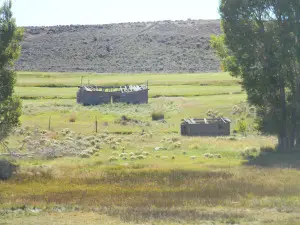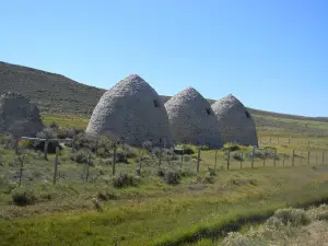 Piedmont was established near the small Union Pacific railroad station of Byrne in 1869 and was later renamed to Piedmont. Soldiers from nearby Fort Bridger frequented this towns saloons. There was a general store, two story hotel, school, post office and newspaper. When the Aspen Tunnel was built in 1901, the town died as the railroad no longer came through. Today about a dozen structures remain in addition to some charcoal kilns. The town is on a working ranch and visitors are not welcome. |