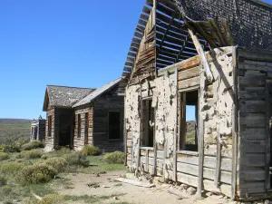 There are about a dozen mainly intact wood cabins and structures. Only one