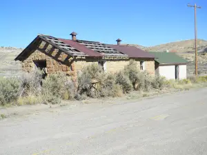 samples here. (9/99; Harold Frodge) REMAINS: Few abandoned store fronts. There is an old cemetary on the left side of Wyoming 371 going out to Superior. Also, if you go through Superior, there are dirt roads that lead to Tri-Territory road and 'Boar's Tusk', the Petroglyphs and the Sand Dunes. |